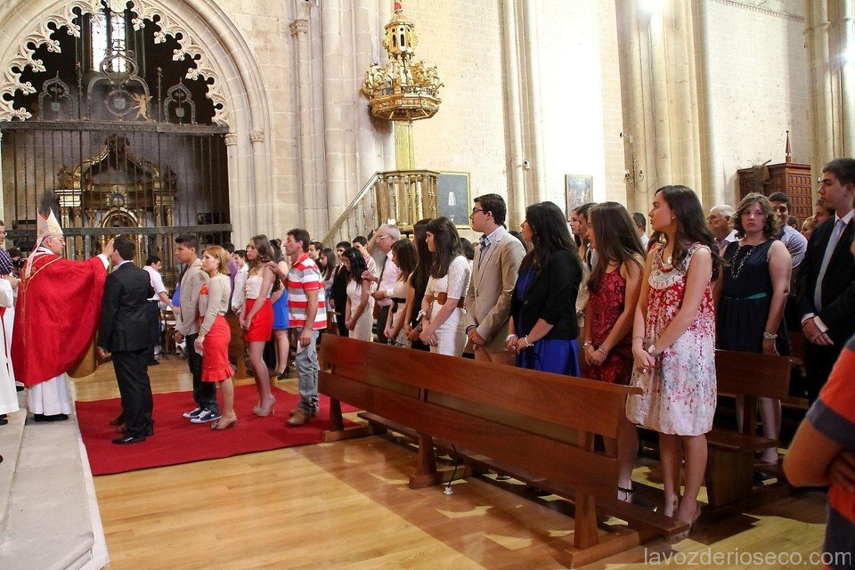 Un total de 32 jóvenes riosecanos de 15 y 16 años recibieron ayer el sacramento de la Confirmación de manos del arzobispo de Valladolid, monseñor Ricardo Blázquez, en una ceremonia que tuvo lugar en la iglesia parroquial de Santa María de Mediavilla ante familiares y amigos que abarrotaron el templo.