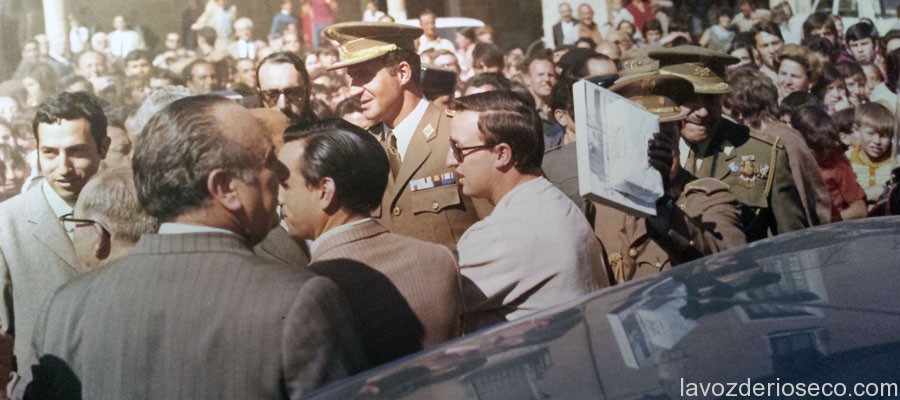 Juan Carlos de Borbón recibió a los alcaldes de la comarca, aunque el momento más esperado fue cuando se asomó al balcón de la Casa Consistorial para dirigirse a las centenares de personas que le esperaban en una abarrotada plaza Mayor llena de banderas nacionales. Por último, como ya publicó este periódico en su sección de La Voz del Ayer, el 29 de marzo de 1977 la corporación municipal, encabezada por el regidor Manuel Fuentes, fue recibida por su majestad en audiencia en Zarzuela. Los riosecanos le entregaron la medalla de la ciudad, que aún puede verse en el Palacio Real (leer más).