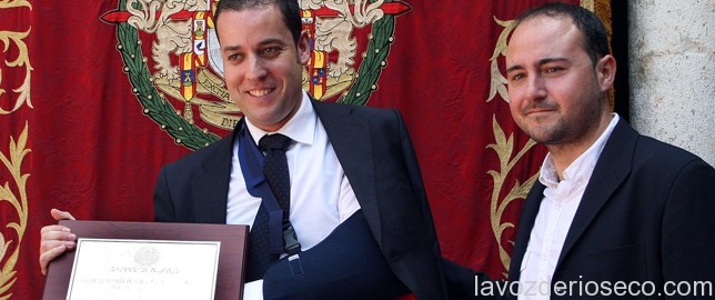 Los editores del periódico digital lavozderioseco.com, José Ángel Gallego y David Carpintero, recogieron hoy de manos del presidente...