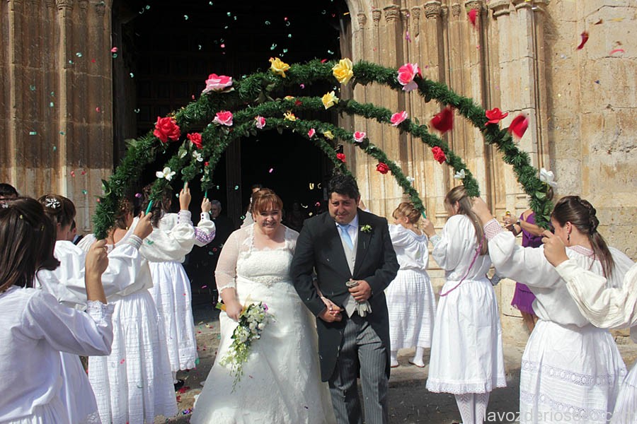 Víctor Pedro Frontela, el presidente de la Junta Agraria Local (JAL), y Cristina Sanabria contrajeron matrimonio hoy sábado en una emotiva ceremonia que tuvo lugar en la iglesia de Santa María. El canónigo penitenciario de la catedral de Valladolid, el sacerdote riosecano, Jesús Hernández Sahagún, tío del novio, fue el encargado de oficiar la eucaristía en la que intervinieron, cantando, la hermana de la novia, Marta, y un sobrino, Tomás, al piano. A la salida de la iglesia les esperaba el grupo de paloteo Virgen del Cabo de Villafrechós, al que perteneció la novia, quien rindió honores a los recién casados con varios bailes. Un almuerzo en el restaurante El Cortijo puso fin a este día inolvidable para Víctor Pedro y Cristina. Muchas felicidades.