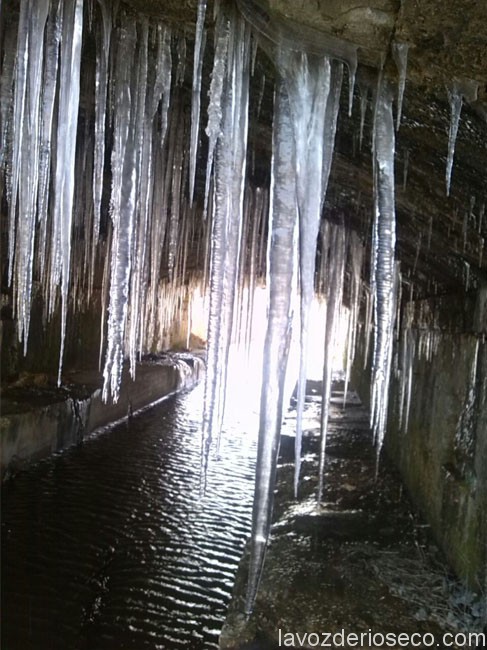 El frío tiene muchos inconvenientes, pero también nos deja algunas bellas estampas. A tan solo siete kilómetros de Rioseco, en el Canal de Castilla, las tremendas heladas de los últimos días permiten una imagen que bien podría haber salido de la novela de Gustavo Martín Garzo La Soñadora. Son las estalactitas que cuelgan del acueducto que permite el paso del canal por encima de las aguas del Sequillo. Una estampa que llega cada año cuando las temperaturas caen desplomadas y que en esta ocasión se la debemos a Fernanda Rodríguez.