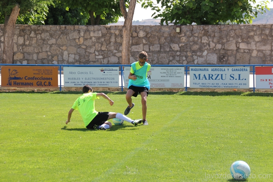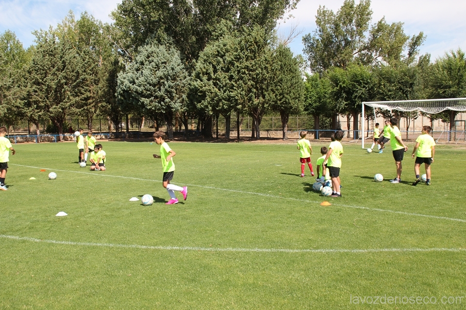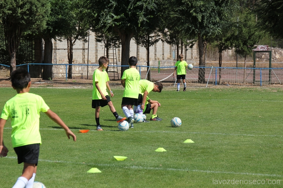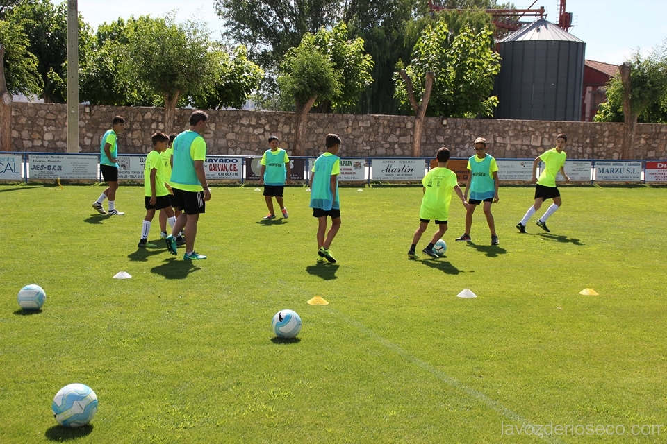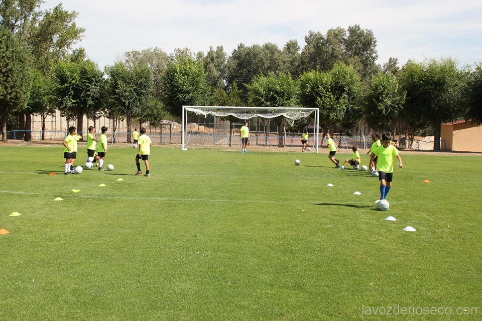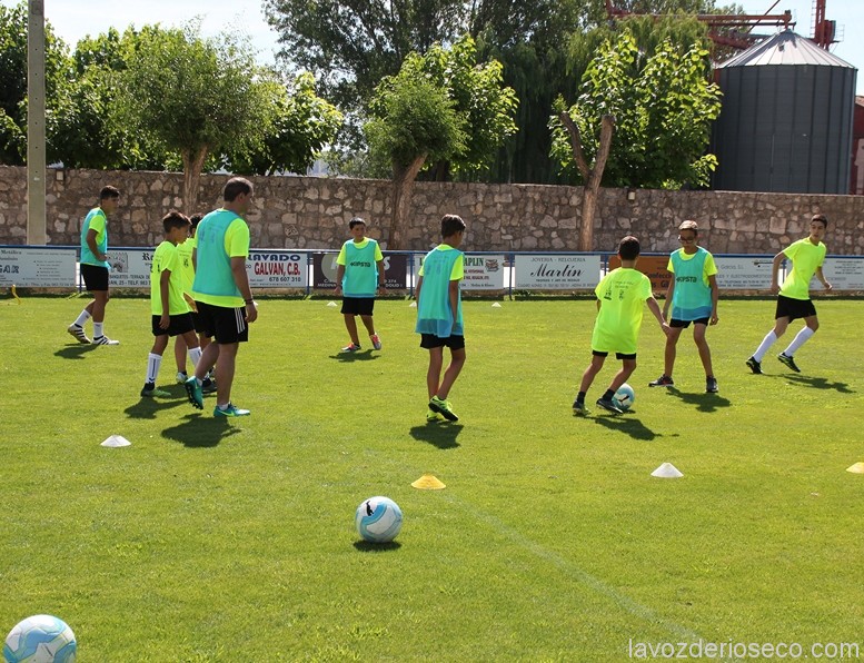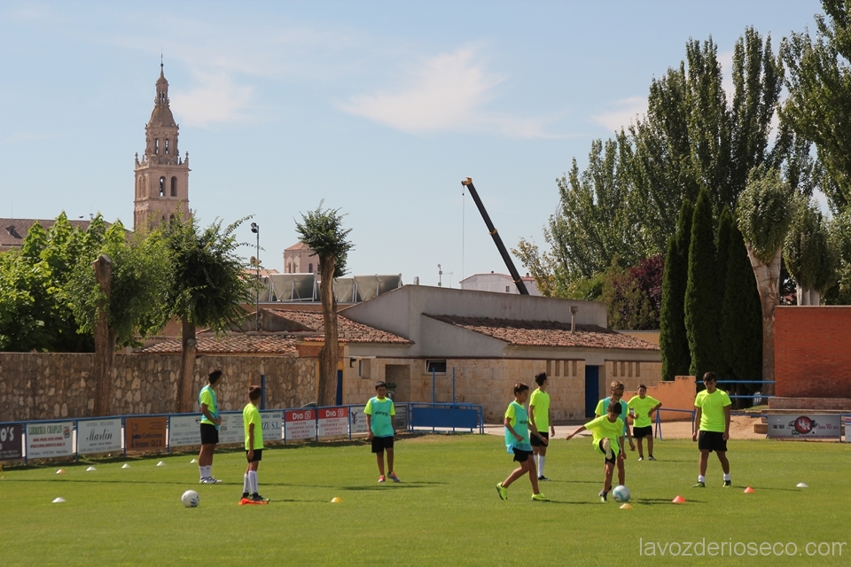 Más de cuarenta niños se han calzado las botas este lunes para participar en una nueva edición del Campus de Fútbol del CD Rioseco y que se prolongará durante toda la semana. El presidente del club blanquinegro, Benito Conde, en declaraciones a La Voz de Rioseco, ha considerado un éxito, “pues es la primera vez que salen dos campus en el mismo verano”, en referencia a la celebración de otro campamento futbolístico llevado a cabo hace unas semanas por el Real Valladolid.