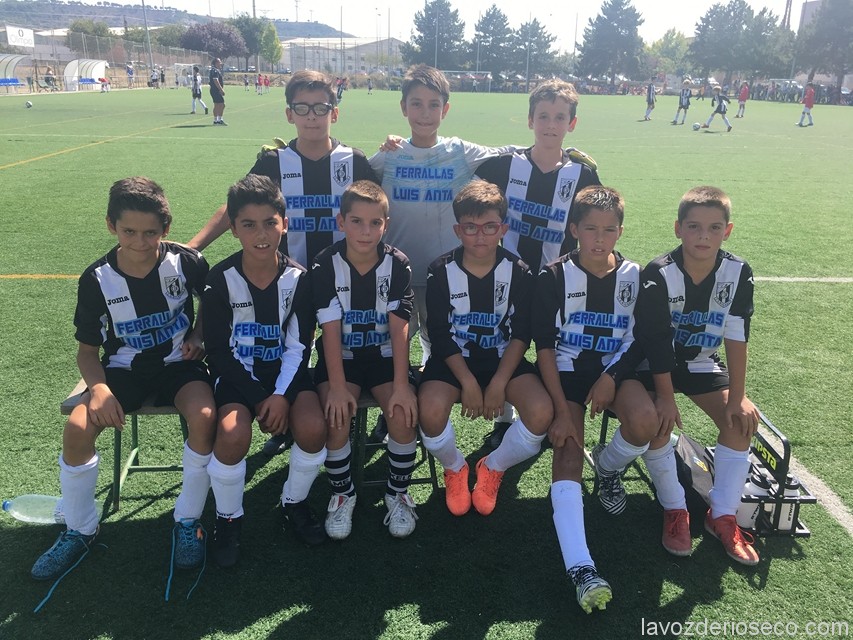 Los benjamines blanquinegros, dirigidos por Tomás Corral e Iván Herreras, saltaron al verde artificial riosecano muy dormidos. Esto propició que el control del encuentro fuese a parar a las botas del conjunto visitante. Tras el reglamentario tiempo de descanso, los locales presentaron un guion bien distinto. Tanto es así que, en apenas diez minutos, sumaron la igualada al marcador, con tantos de Roberto y Mario Navarro. Con el 2-2, el ritmo del partido no aminoró su marcha. Ambos equipos disfrutaron de multitud de ocasiones, pero la suerte no se decantó por ningún bando. El pitido final sentenció el merecido y justo empate.