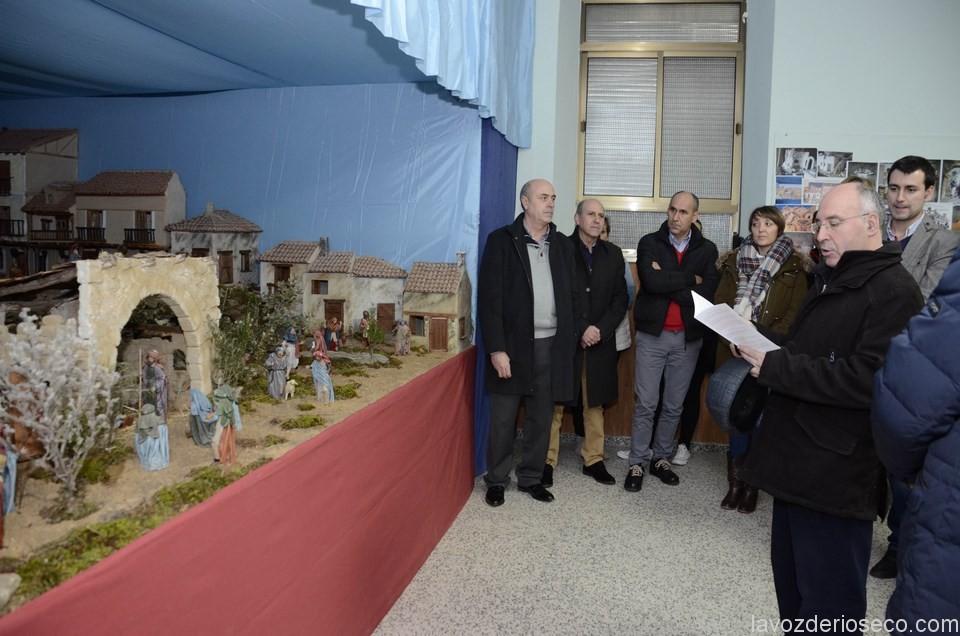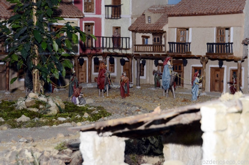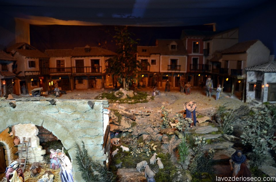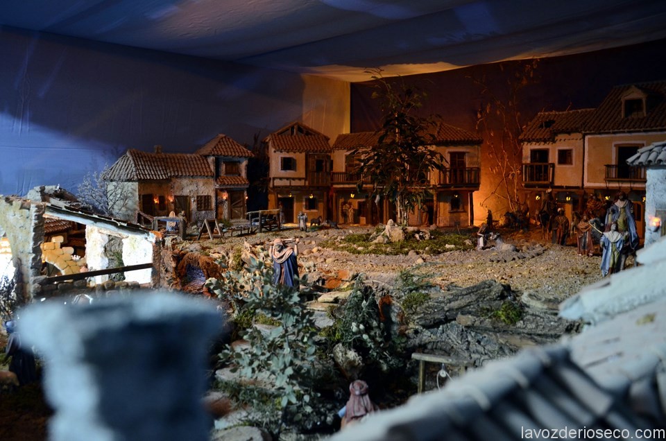 José Manuel de la Torre, que junto a José Manuel Martín, Jesús García, Pedro Villa y Antonio Pérez se han encargado del montaje, explica que se trata de un diorama de 16 metros cuadrados en el que se ha recreado la escena del nacimiento en un pueblo que bien podría ser Rioseco, con casas reproducidas fielmente.