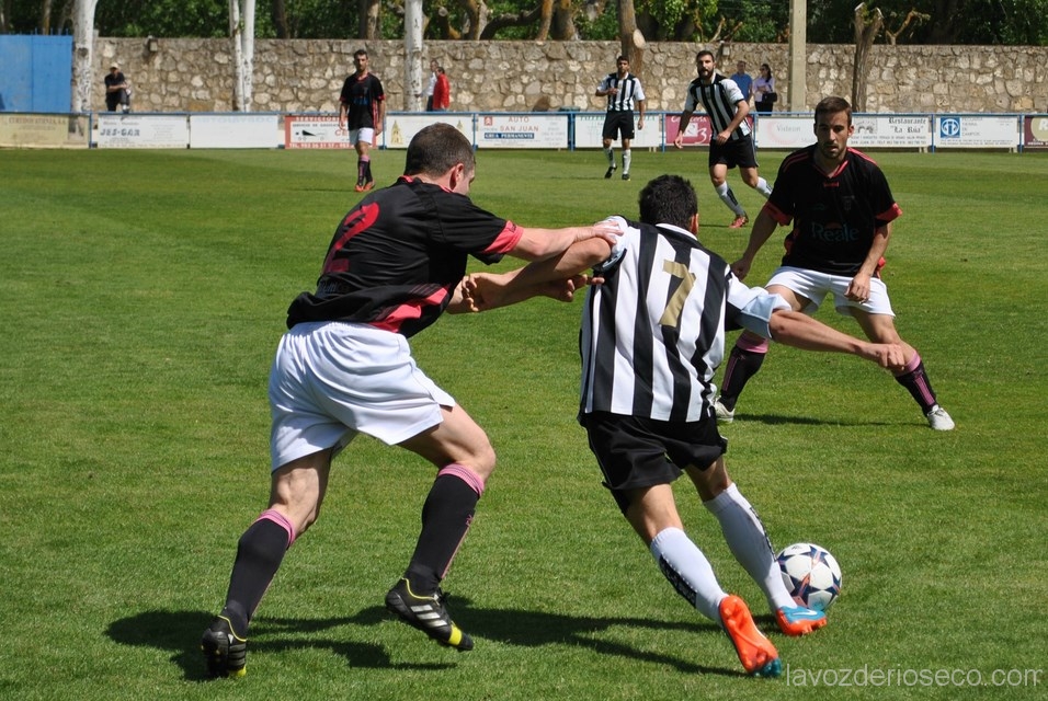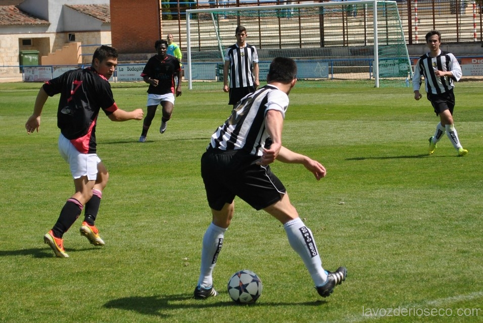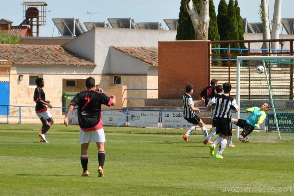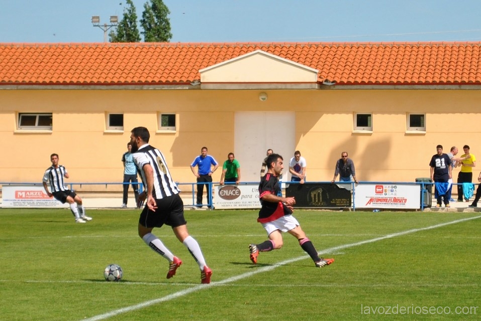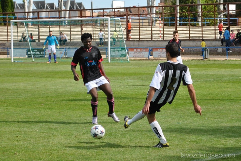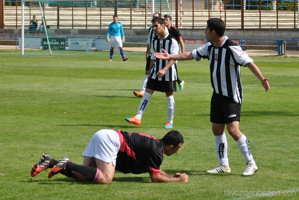 El gol tranquilizó a la zaga visitante, pero no desanimó a los riosecanos, que continuaron ejerciendo una gran presión. Ocasiones no faltaron en las botas de los hombres de David. La más clara la tuvo Mario: recibió un gran balón recuperado por Ángel, dribló una a una todas las líneas del Ciudad Rodrigo, pero fue derribado por uno de los defensas, antes de rematar la acción. El árbitro no señaló la falta y la protesta local terminó con la expulsión de Rubén Reguera, a petición de un linier que estuvo más preocupado por el banquillo que por lo que ocurría en el verde. Los visitantes, a su vez, inquietaron la portería riosecana y, de no haber sido por la brillante actuación de la defensa y de Candi, podrían haber afrontado el descanso con una buena renta a su favor.