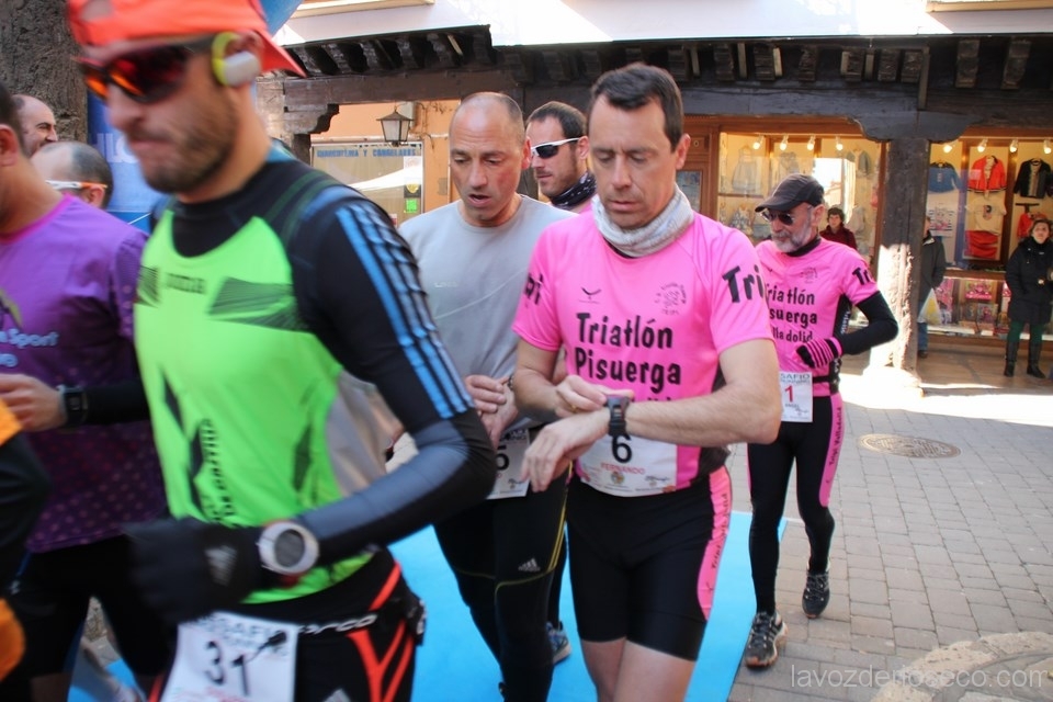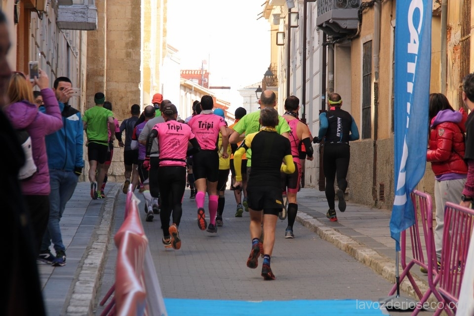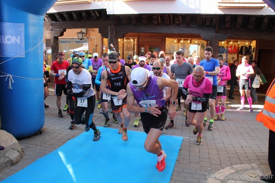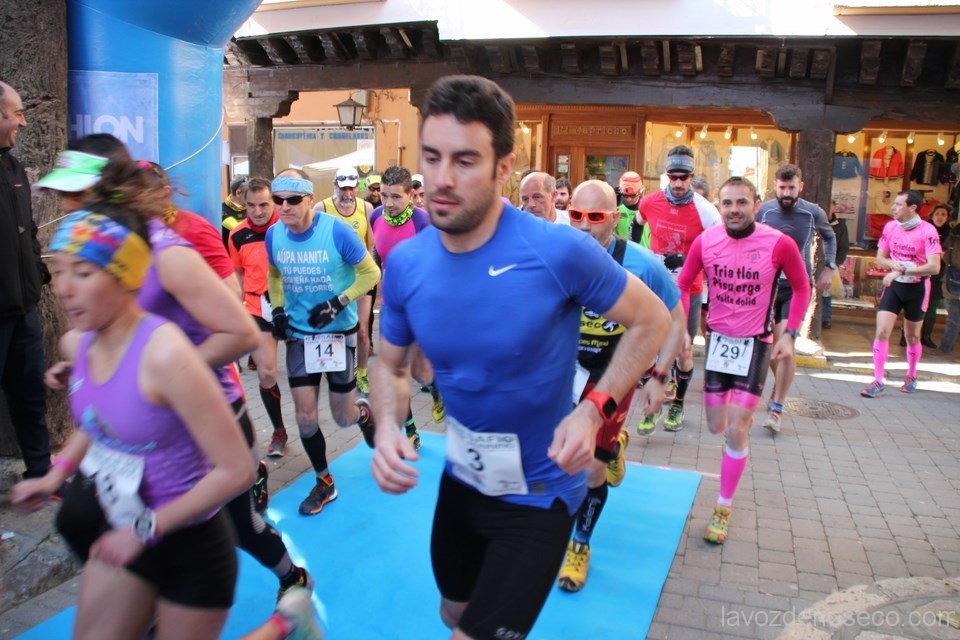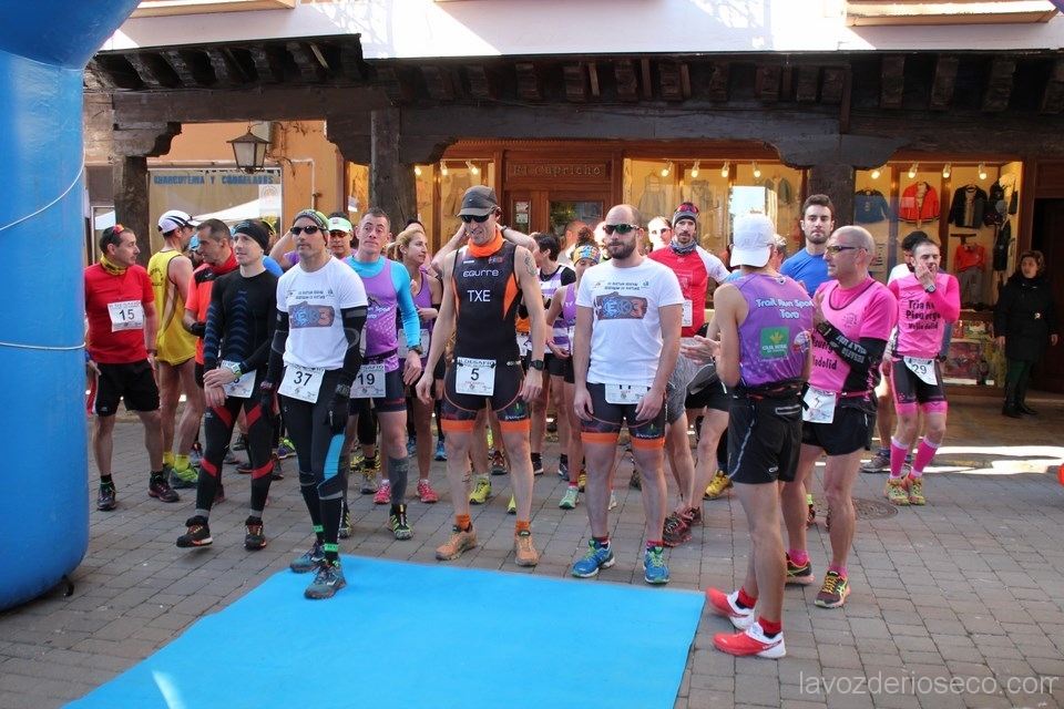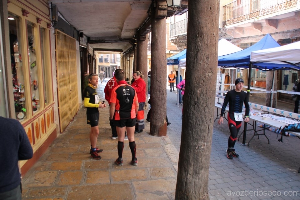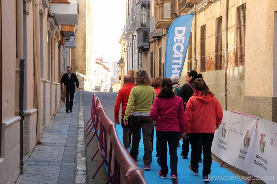 La primera de las tres carreras tuvo lugar en la mañana de sábado, con un recorrido de 15,5 kilómetros que tenía salida y llegada en la calle Mayor de Medina de Rioseco, y recorría gran parte del páramo de Valdecuevas. Fueron, los a la postre ganadores del desafío, Gorka García y Patricia Muñoz, quienes cruzaron en primera posición la línea de meta. Corrió este primer segmento la que fuera medalla de bronce del Campeonato del Mundo, Maite Martínez, quien fue cuarta. Una decena de andarines completaban este mismo circuito en una versión popular de senderismo.