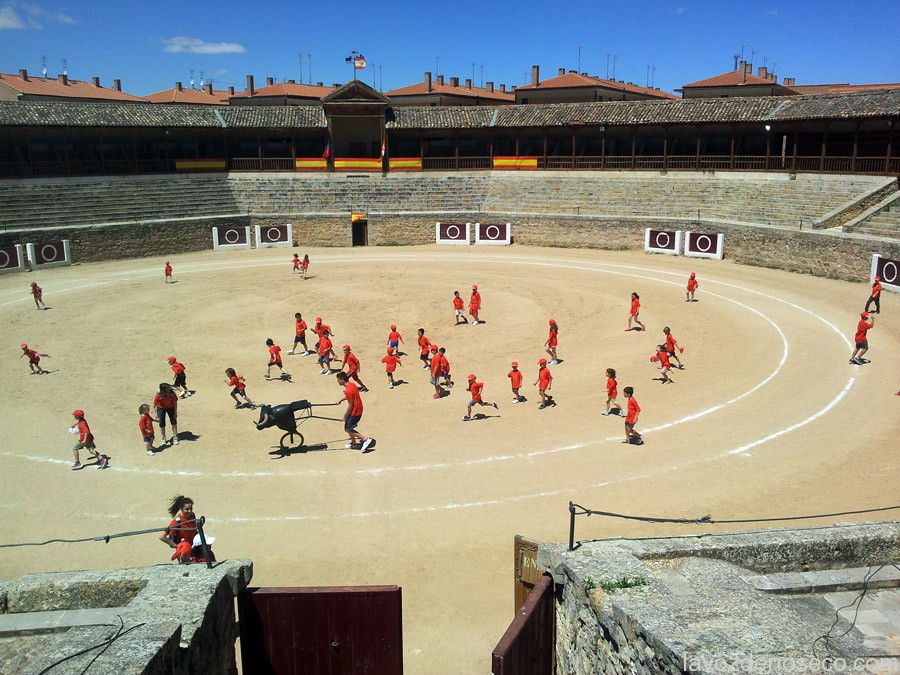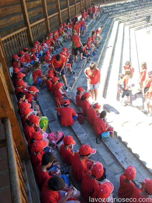 El casi centenar de niños que estos días participa en el Campamento Urbano Rioseco Olímpico visitó ayer mañana la Plaza de Toros para conocer, con el espectáculo sonoro creado para Del mantel al albero, el Coso del Carmen. Tras la visita organizada por el Ayuntamiento de Rioseco, en el que colaboró lavozderioseco.com y la empresa de comunicación Dualia, los pequeños se divirtieron de lo lindo cuando de toriles salió un morlaco. Los más valientes corrrieron delante de los pitones y se atrevieron a cortar, incluso. Algunos, por contra, no salieron de los burladeros. De lo que sí que tuvieron tiempo todos fue de almorzar en una divertida mañana del Campamento Urbano.