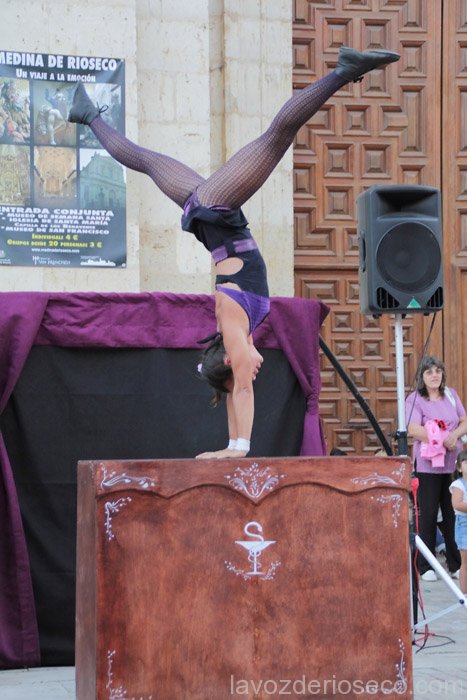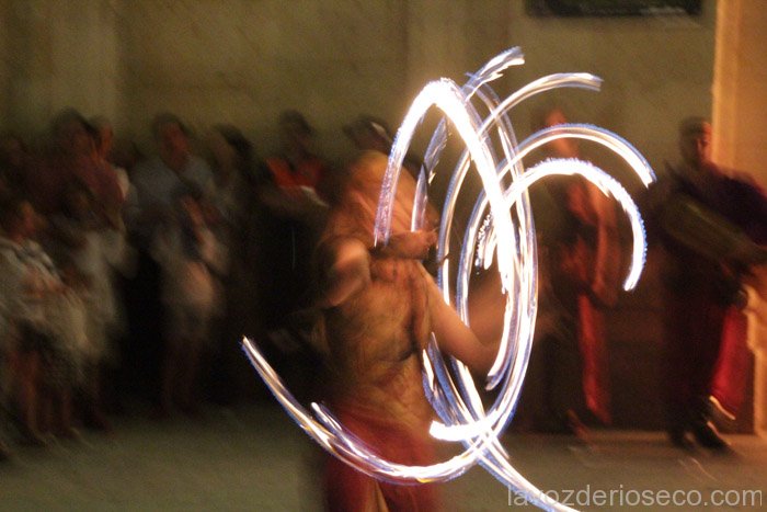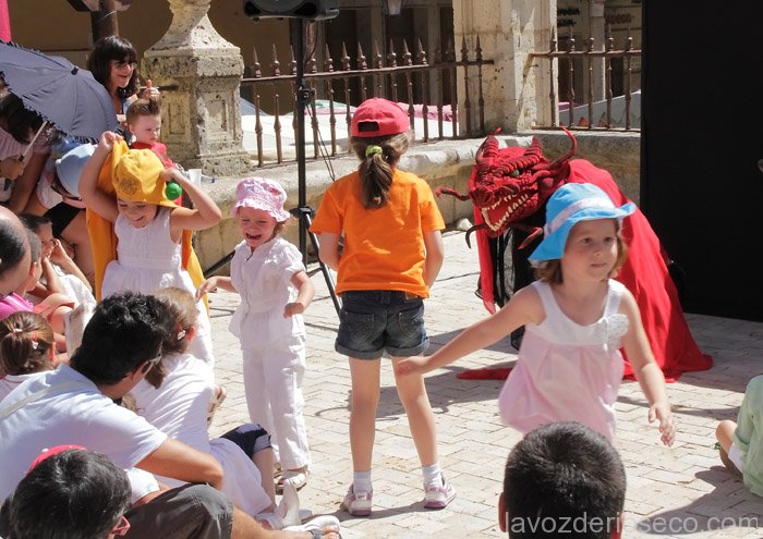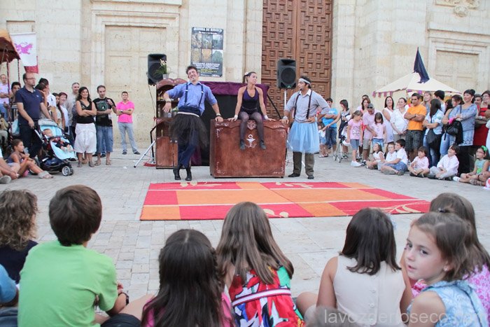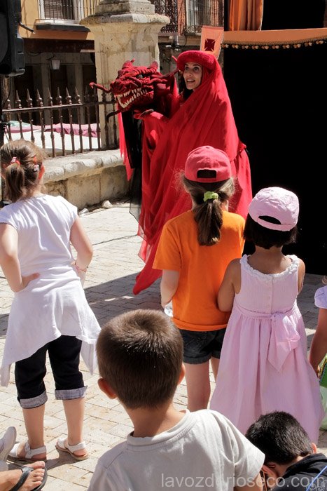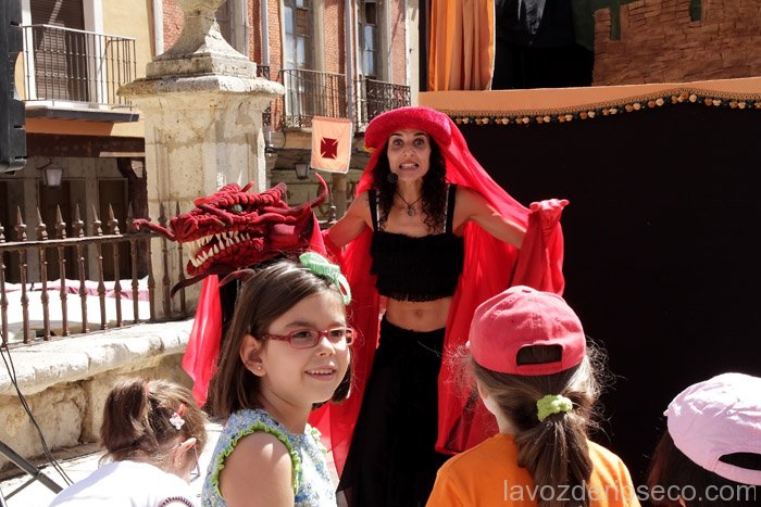 Teatro del Gatto protagonizaba un cuento chino Juan-Chi-To y el Dragón además de unos divertidos títeres. De nuevo, por la tarde, los títeres narraban Las historias del lobo Bob, además de la desternillante Trippe de cómicos. Amontonados por Azar traía su espectáculo circense H2Olga y los talleres en vivo de caligrafía antigua, impresión y grabado en papel, fundición de bronce, fragua, bolillos, vidrio soplado y mimbre permitían la participación de los más pequeños, que a esas horas ya soñaban con un tiempo lejano en el que príncipes, dragones y castillos eran los protagonistas.