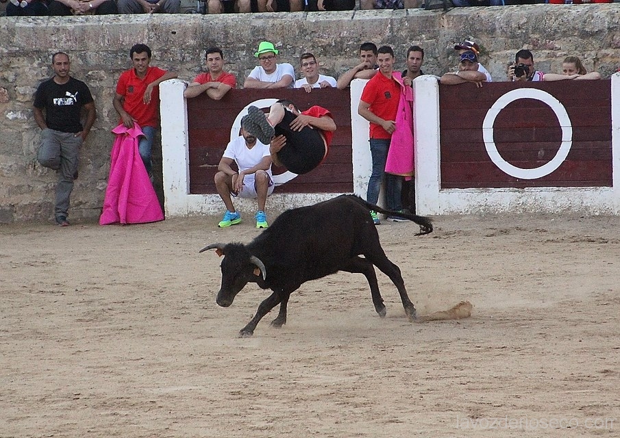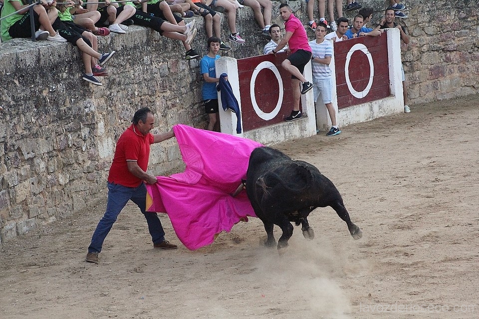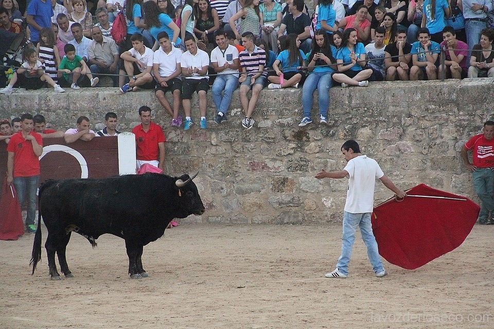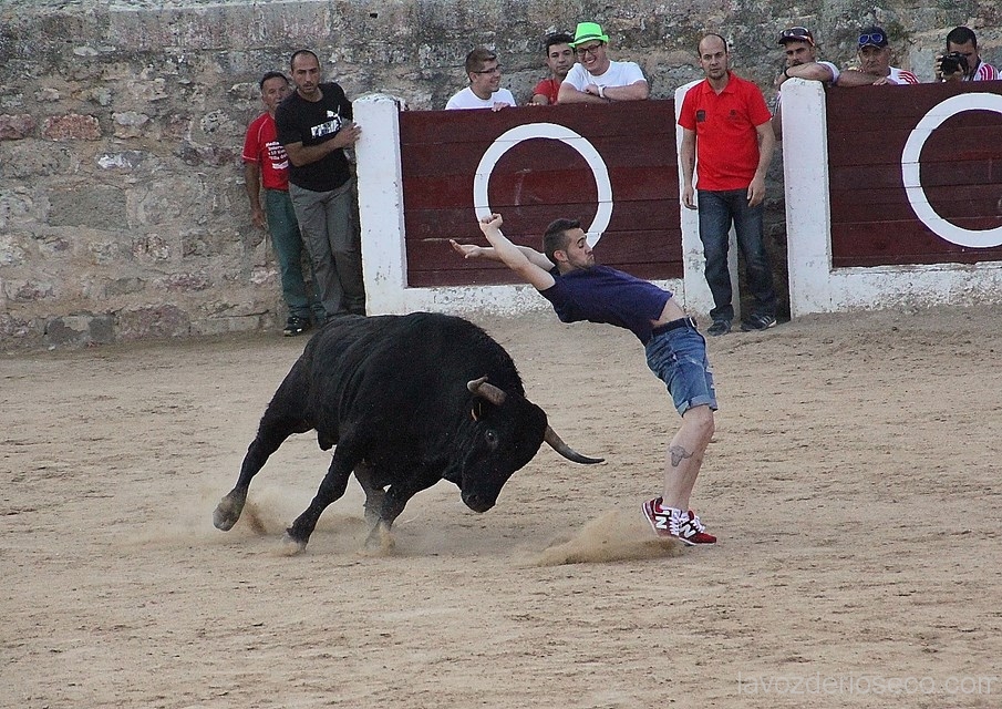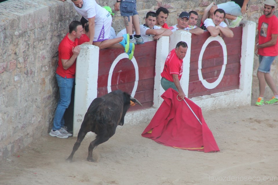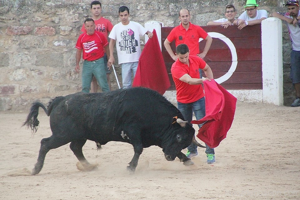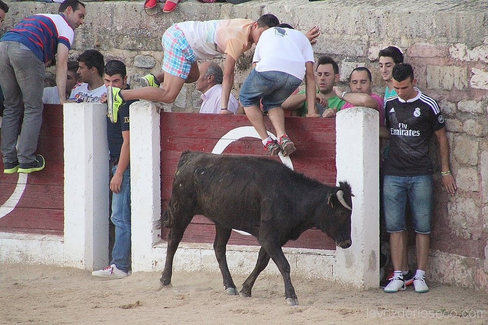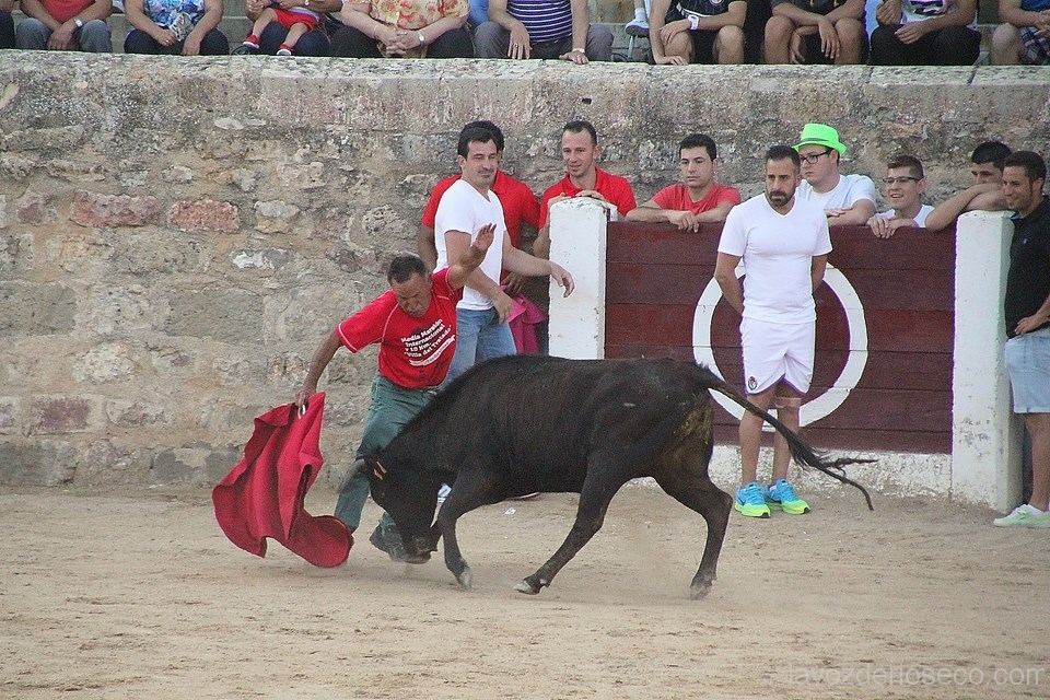 Un novillo-toro de la ganadería de Vellosino que dio buen juego durante algo más de veinte minutos. Carreras, recortes y hasta algún salto divirtieron a los centenares de personas que se dieron cita para asistir al festejo. La capea posterior contó con tres vacas, una de ellas tuvo que devolverse a los corrales por su invalidez. De nuevo saltó al ruedo el astado que se empleó en el capote y en la muleta de varios mozos como así lo atestigua este amplio reportaje gráfico.