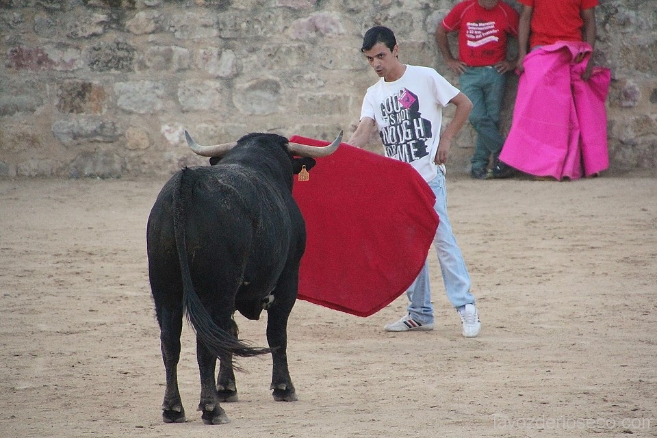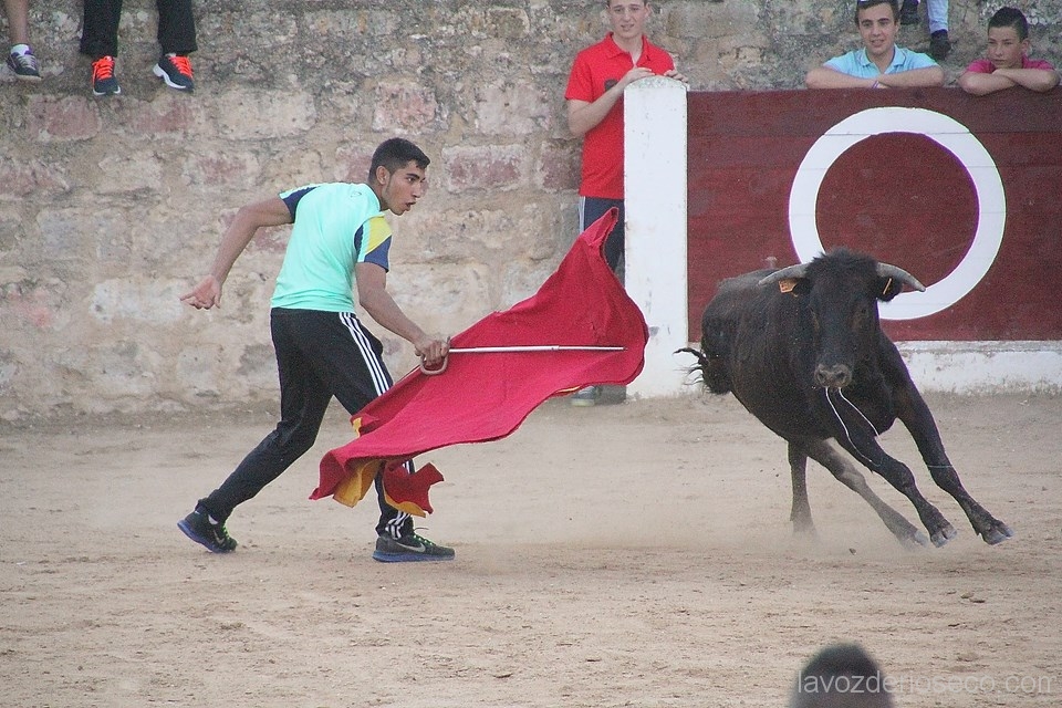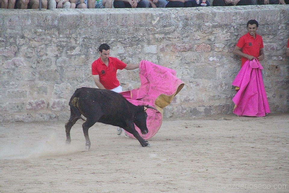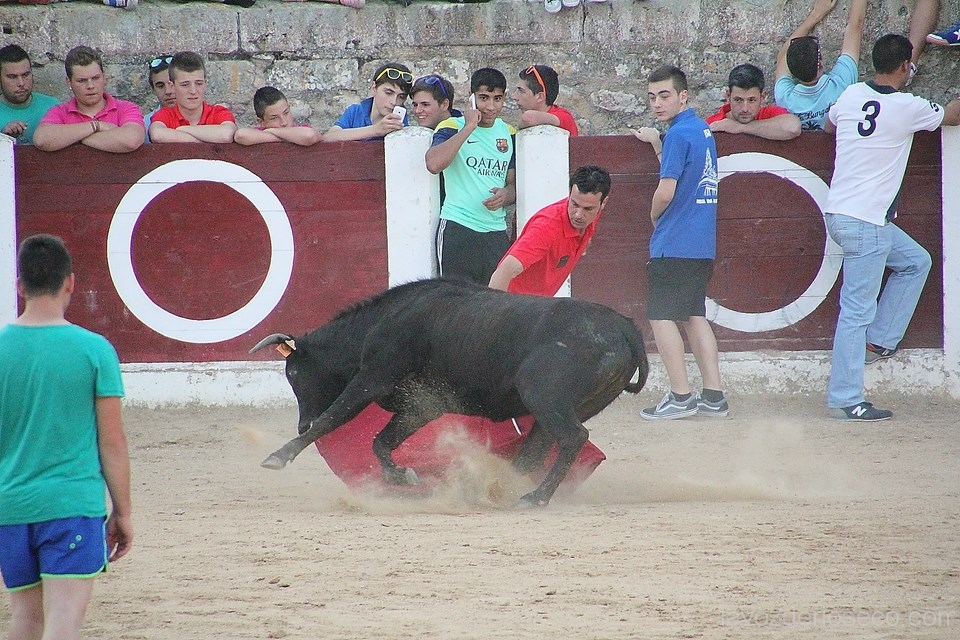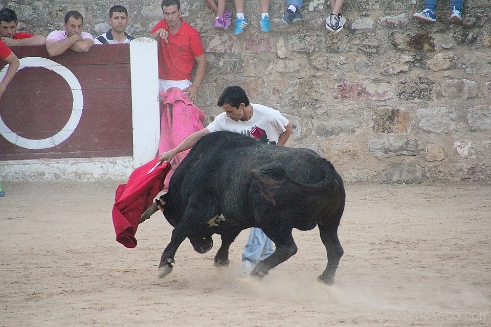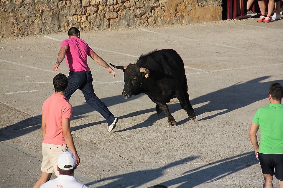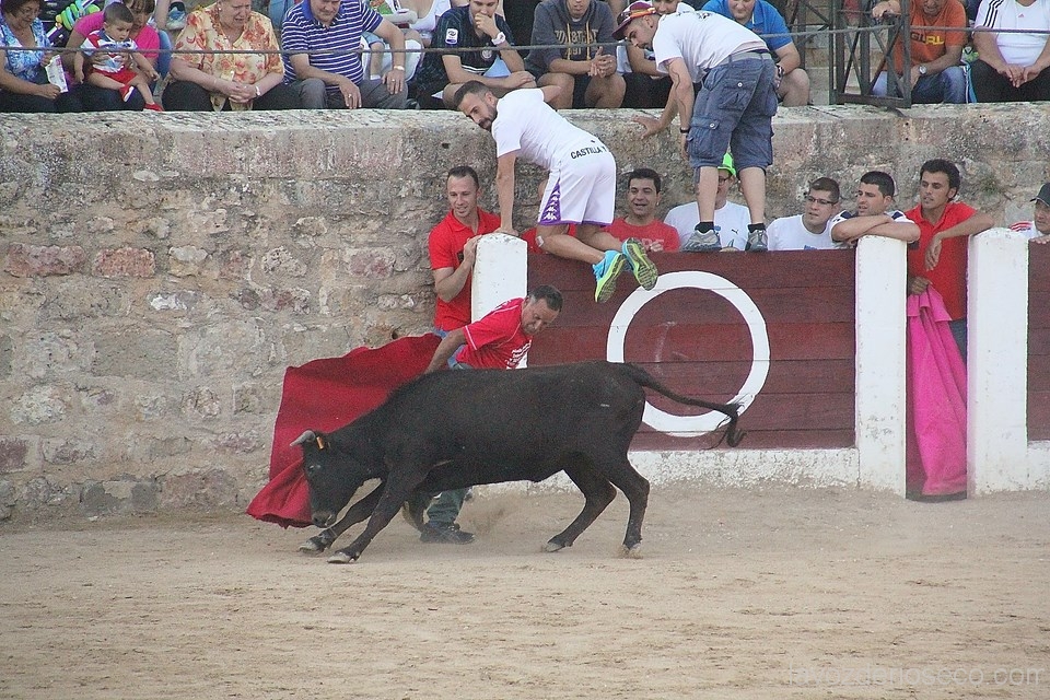 Un novillo-toro de la ganadería de Vellosino que dio buen juego durante algo más de veinte minutos. Carreras, recortes y hasta algún salto divirtieron a los centenares de personas que se dieron cita para asistir al festejo. La capea posterior contó con tres vacas, una de ellas tuvo que devolverse a los corrales por su invalidez. De nuevo saltó al ruedo el astado que se empleó en el capote y en la muleta de varios mozos como así lo atestigua este amplio reportaje gráfico.