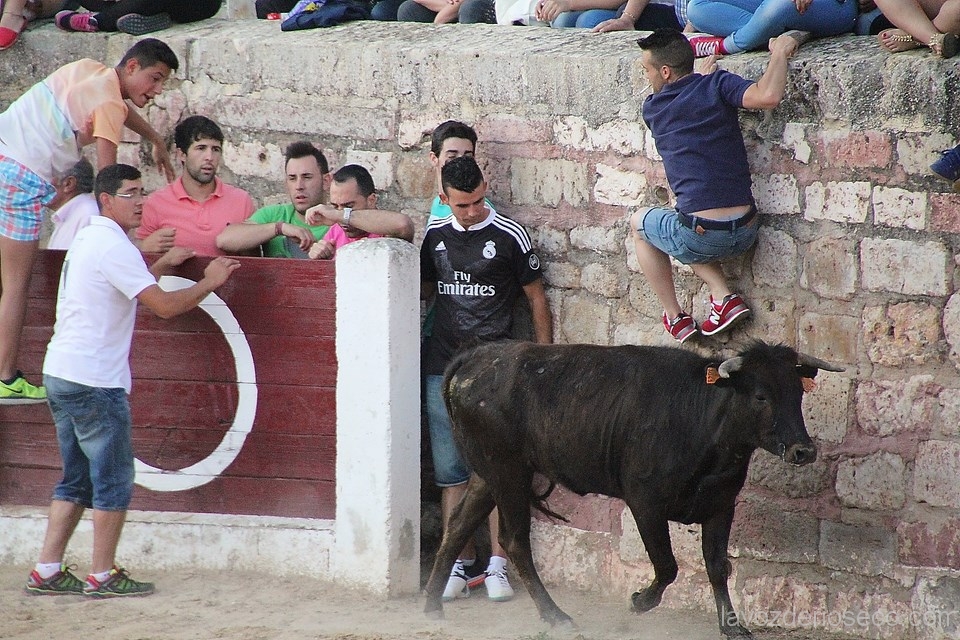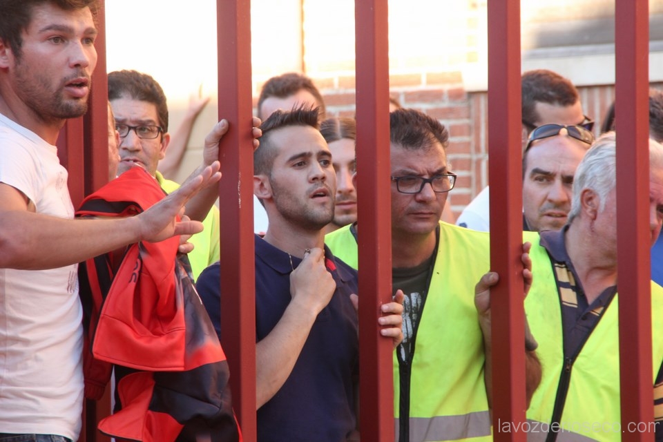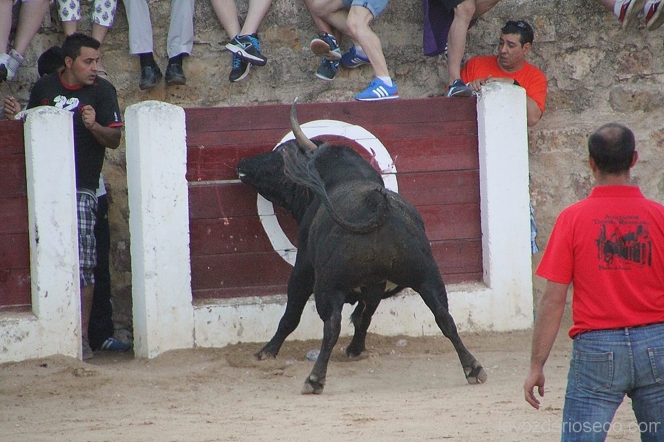 El VI Novillo Ciudad de los Almirantes cumplió. Como en su primera edición saltó desde un cajón pero esta vez a las calles. Era la novedad del festejo gracias a las nuevas talanqueras instaladas en la calle Castilviejo. Minutos después de las ocho de la tarde, los componentes de la Asociación Taurina Riosecana se hacían la foto de familia ante el cajón del que saldría el morlaco. Jesús Pérez y Julio Mulero tenían el honor de abrir el cajón y a pocos metros Álvaro Rueda, Iván San José, Alejandro García Pajarito y José María Garcá, entre otros, esperaban al astado.