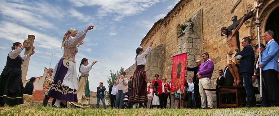 El buen tiempo ha sido el protagonista de un intenso fin de semana en Palacios de Campos que, como es habitual en estas fechas, ha festejado a su patrón, el Cristo de las Aguas. El domingo tras la misa se celebró la tradicional procesión por los alrededores de la iglesia con la participación del grupo de danzas Ciudad de Rioseco, presidida por el mayordomo de la cofradía Juan Carlos Vallejo.