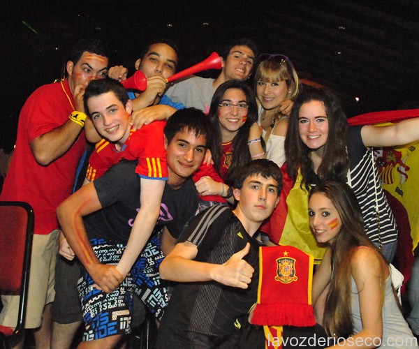 La pasión con la que los riosecanos vivieron los 90 minutos fue, de nuevo, indescriptible, aunque eso sí se sufrió mucho menos que en 2008 y 2010. A pesar de ello, la victoria se festejó como la primera, y tras el pitido final y después de que Casillas levantará al cielo de Kiev el ansiado trofeo, una marea de niños, jóvenes, adultos y algunos no tan jóvenes se dirigieron a la Plaza Mayor donde se celebró el triunfo.