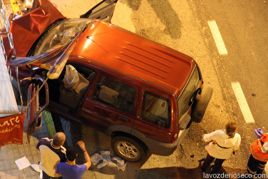 En el interior del todoterreno siniestrado viajaba una pareja de jóvenes, que no sufrieron daños personales, a excepción del conductor del vehículo que tuvo que ser atendido de una brecha en la cabeza. Como consecuencia del brutal impacto, la puerta de la cafetería del citado hotel y parte de la fachada quedaron seriamente dañadas. Vecinos de los pisos colindantes aseguran que el impacto provocó un tremendo ruido que hizo despertar y asomarse al balcón a muchos de ellos. Parece ser que el exceso de velocidad pudo ser la causa más probable de la colisión.